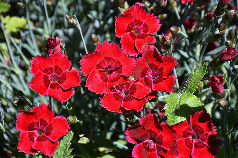 Fire Star Pinks has masses of beautiful fragrant red frilly flowers with crimson centers at the ends of the stems from late spring to mid summer, which are most effective when planted in groupings. The flowers are excellent for cutting. Its attractive narrow leaves remain grayish green in colour throughout the year.