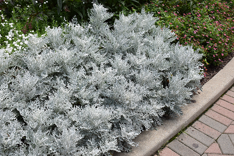 Silver Dust Dusty Miller will grow to be about 12 inches tall at maturity, with a spread of 12 inches. When grown in masses or used as a bedding plant, individual plants should be spaced approximately 8 inches apart. Although it's not a true annual, this plant can be expected to behave as an annual in our climate if left outdoors over the winter, usually needing replacement the following year. As such, gardeners should take into consideration that it will perform differently than it would in its native habitat.
