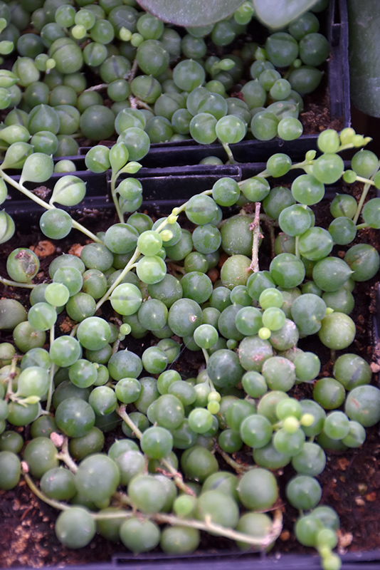 When grown indoors, String Of Pearls can be expected to grow to be only 2 inches tall at maturity, with a spread of 3 feet. It grows at a medium rate, and under ideal conditions can be expected to live for approximately 10 years. This houseplant will do well in a location that gets either direct or indirect sunlight, although it will usually require a more brightly-lit environment than what artificial indoor lighting alone can provide. It prefers dry to average moisture levels with very well-drained soil, and may die if left in standing water for any length of time. This plant should be watered when the surface of the soil gets dry, and will need watering approximately once each week. Be aware that your particular watering schedule may vary depending on its location in the room, the pot size, plant size and other conditions; if in doubt, ask one of our experts in the store for advice. It is not particular as to soil type or pH; an average potting soil should work just fine.