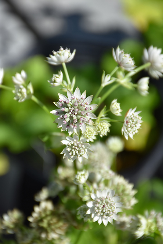 Star Of Billion Masterwort features airy cymes of white pincushion flowers rising above the foliage from early to late summer. The flowers are excellent for cutting. Its crinkled ferny pinnately compound leaves remain dark green in colour throughout the season.