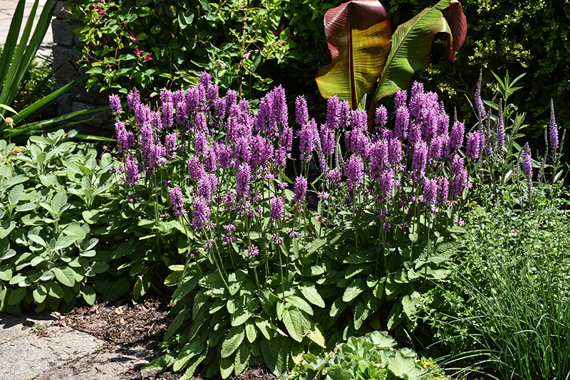 Hummelo Betony is a dense herbaceous evergreen perennial with tall flower stalks held atop a low mound of foliage. Its medium texture blends into the garden, but can always be balanced by a couple of finer or coarser plants for an effective composition.